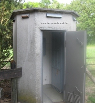 Schalthaus der deutschen Bahn, bestückt mit einem Buchtenschrank. Außerdem befindet sich noch der Schaltkasten für die Sirene E57 und eine Schaltstelle für die umliegende Beleuchtung in dem Schalthaus.
